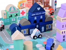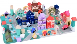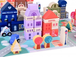 Questo set pastello contiene 115 pezzi di legno diversi inclusi edifici, veicoli, alberi e segnali stradali. I bambini possono costruire la propria città con una scuola, un ospedale, una banca e una stazione di polizia. Con questa costruzione, non solo sviluppano la loro immaginazione, ma anche le abilità motorie.