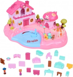 Scopri una casetta incantata in giardino: una casa aperta con negozio a forma di amanita, laghetto con controller e parco giochi invita i bambini a infinite narrazioni. L’induzione magnetica nascosta mette in moto le figurine e i dettagli della scena: basta far scorrere il controller sul laghetto per mandarli verso l’orto, il parco giochi o il negozio.