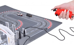 Vivi duelli ruota a ruota sul tuo tracciato. La pista a mattoncini si monta facilmente, è robusta e, grazie all'alimentazione USB, non devi preoccuparti delle batterie. Basta collegare i controller alla stazione di controllo e la gara può iniziare – chi attraverserà START/ARRIVO per primo?