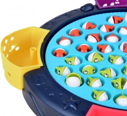 Divertente gioco interattivo per bambini e genitori, in cui peschi i pesciolini da un laghetto rotante usando le canne. Il gioco consente fino a 4 giocatori, include 45 pesciolini in colori vivaci e riproduce suoni di gorgoglio e una melodia allegra. Sviluppa al meglio la motricità fine e la coordinazione occhio–mano. Adatto dai 3 anni, alimentazione 3× AA.
