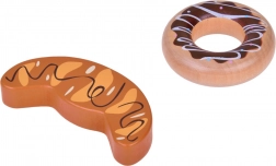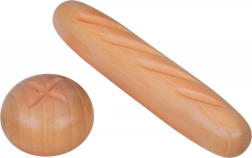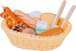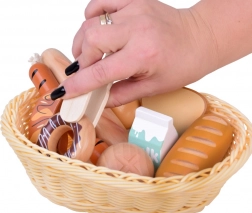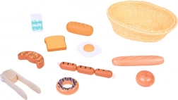 Baguette, panino, toast, croissant, donut, salsicce, uovo e latte: forme e colori fedeli invitano a giocare alla cucina o al negozio.
