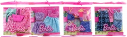 Questo set moda per bambole BARBIE contiene tutto ciò di cui le piccole stylist hanno bisogno per creare look originali. Nella confezione trovi due outfit completi – ogni volta o un abito, oppure una combinazione di top e parte inferiore – e due accessori alla moda per completare ogni outfit alla perfezione.