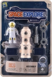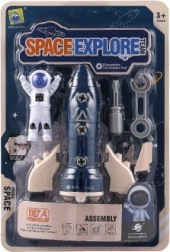 Parti per l’assemblaggio (razzo / modulo), mini-figura di astronauta, cacciavite in plastica, chiave