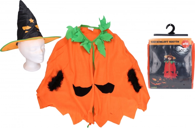 Adorabile e facile da indossare costume di carnevale da zucca per bambini alti 110–120 cm. Include mantello e cappello, ideale per carnevale, Halloween e feste per bambini.