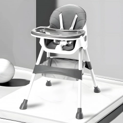 La sicurezza è garantita dalla cintura a 5 punti e dalle gambe in metallo con piedini antiscivolo. Il vassoio a doppio strato removibile ha bordi rialzati e portabicchiere; lo strato superiore si può lavare in lavastoviglie. La struttura pieghevole fa risparmiare spazio e il cestino sotto la seduta tiene bavaglini, salviette e giochi sempre a portata.