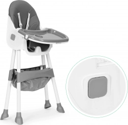 Con un solo clic pieghi il seggiolone e risparmi spazio. Il pratico cestino sotto la seduta contiene salviette, bavaglini e giochi: tutto a portata di mano.