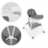 Il seggiolone ECOTOYS facilita i pasti in famiglia e le prime pappe. Grazie all’ampio vassoio regolabile in 3 posizioni, il bambino mangia comodamente e può giocare – costruire con i blocchi o disegnare. Il sedile con rivestimento in resistente ecopelle si pulisce con una passata, per una manutenzione rapida e senza pensieri.