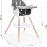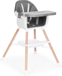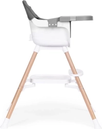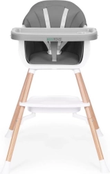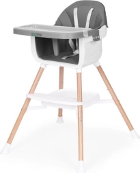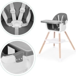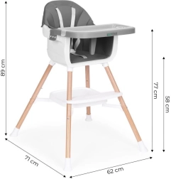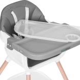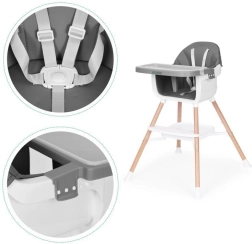 Grazie alla struttura ben studiata garantisce una posizione sicura e confortevole. La cintura a 5 punti trattiene il bambino in modo affidabile, il vassoio regolabile su 3 posizioni si rimuove e si pulisce facilmente, i bordi rialzati e il portabicchiere evitano le fuoriuscite. Il rivestimento in resistente eco-pelle si pulisce con facilità, le terminazioni antiscivolo proteggono il pavimento e impediscono lo spostamento della sedia. La pratica mensola sotto la seduta ospita bavaglino o salviette e aumenta la stabilità.