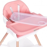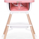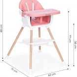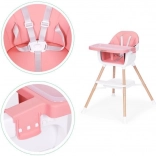 Pratico seggiolone per bambini 2 in 1 del marchio ECOTOYS per bimbi da 6 a 36 mesi, che unisce un seggiolone alto e un rialzo da sedia. Offre una struttura metallica stabile, rivestimento in eco-pelle resistente e facilmente lavabile, vassoio doppio strato removibile e lavabile in lavastoviglie, cintura di sicurezza a 5 punti, piedini antiscivolo, fermo anti-scivolamento e comodo ripiano sotto la seduta. Portata massima 20 kg.
