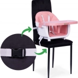 2 modalità d’uso – a casa e in viaggio: Il seggiolone alto si trasforma in pochi istanti in un rialzo fissato a una sedia standard. Dopo aver rimosso le gambe, la seduta si fissa con le cinghie incluse – soluzione ideale per vacanze, visite e cucine piccole.