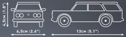 Il modello a mattoncini con licenza FSO 125p Kombi riproduce fedelmente le forme caratteristiche della leggendaria familiare, famosa per il vano bagagli spazioso e l’affidabilità. La scala 1:35 offre un equilibrio tra dettaglio e dimensioni, perfetto sia per l’esposizione sia per il gioco.