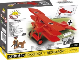 Vivi la storia dell’aviazione con il modello autentico Fokker DR.1 Red Baron in scala 1:32 di COBI. Il set include 221 pezzi di alta qualità, dettagliati stampe al posto degli adesivi, elementi mobili (elica, ruote, alette) e inoltre la minifigure di Manfred von Richthofen e del suo cane Moritz. Ideale per collezionisti, appassionati di storia e per gioco creativo.