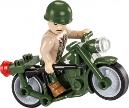 La confezione include due minifigure (soldato americano e segnalatrice), un motociclo militare e accessori: barili, cassa, pala, sacchi di sabbia e munizioni. Tutti i pezzi presentano stampe di qualità che non si deformano e non scoloriscono neppure con un gioco intensivo.