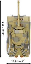 I pezzi con stampe di alta qualità e resistenti non sbiadiscono né si deformano, il carrello funzionante consente un movimento fluido sulle superfici e le botole apribili rivelano lo spazio per le minifigurine standard COBI. È incluso il mini-modello del motore Maybach, che può essere esposto accanto al carro o riposto sotto il pannello di servizio.