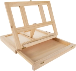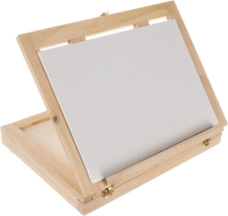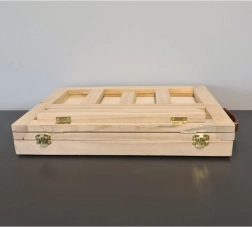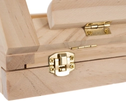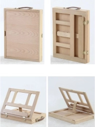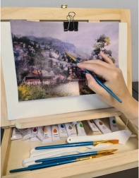 La valigetta in legno è dotata di cassetto e cavalletto, garantendo un facile trasporto e una comoda organizzazione dei materiali artistici.