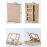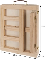 La valigetta è realizzata in legno resistente e include un cavalletto per dipingere con facilità. Tutti gli strumenti e gli accessori sono organizzati per essere facilmente accessibili e ben protetti durante il trasporto.
