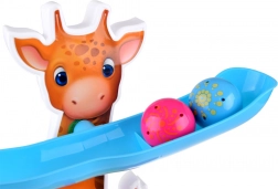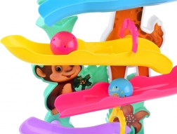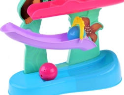 Le biglie sfrecciano lungo quattro rampe e invogliano i bambini a giocare più e più volte, sviluppando la percezione del movimento e la pazienza.