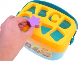 Il coperchio giallo con ritagli guida i bambini ad abbinare le forme corrette. Supporta il pensiero logico e la precisione dei movimenti.