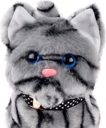 La gattina interattiva in versione grigia tigrata ha un soffice manto di peluche, occhi azzurri e un tenero nasino rosa. Il collarino a pois aggiunge un aspetto realistico. Il giocattolo è perfetto per sviluppare fantasia e motricità fine, offrendo allo stesso tempo tanto divertimento a casa e in viaggio.