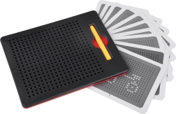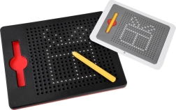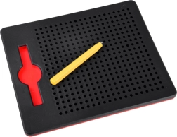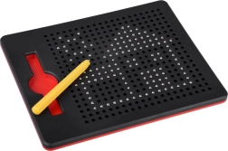 Questa lavagna magnetica compatta è ideale per bambini e adulti come strumento rilassante e al contempo educativo. La punta magnetica attira le sfere nei fori creando punti nitidi, con i quali è facile comporre immagini, numeri o lettere. Il motivo finito si cancella semplicemente spingendo le sfere indietro: la lavagna è infinitamente riutilizzabile.