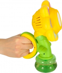Questo soffiatore di bolle per bambini a forma di fiore è il compagno ideale per giochi in giardino o in casa. L'emissione automatica delle bolle garantisce un controllo semplice e con la pressione di un pulsante assicura subito divertimento.