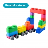 Scopri infinite possibilità di divertimento con questo set di costruzioni morbido Far Far Land, che include 25 blocchi colorati e 16 ruote, tutto realizzato con materiali sicuri.