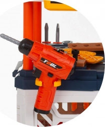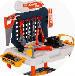 Il set include numerosi accessori – martelletto, seghetto, pinze, cacciaviti, chiavi e molti altri elementi, che possono essere riposti in pratici scomparti. Il banco è realizzato in conformità agli standard europei di sicurezza ed è un’ottima scelta per i bambini che amano creare e scoprire.