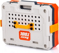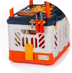 Ricco set di utensili, viti e accessori per costruire, riparare e creare infiniti scenari di gioco da piccoli artigiani.