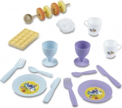 - Set completo da 19 pezzi – 2× tazze, 2× calici, 2× piatti, 2× cucchiai, 2× forchette, 2× coltelli, waffle, meringa, spiedino di frutta e 4× fette di frutta.