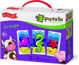 I puzzle trio Far Far Land offrono un mondo incredibile pieno di immagini colorate. Ogni set contiene 8 immagini uniche, ognuna composta da 3 pezzi. Questi puzzle supportano non solo la creatività dei bambini, ma anche la loro capacità di collegare e distinguere oggetti diversi.