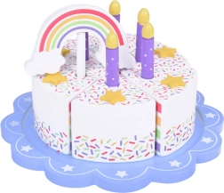 Presentiamo a voi la torta di compleanno arcobaleno in legno, che offre ore infinite di divertimento per i bambini. Questa allegra torta con i suoi sei pezzi colorati è come un vero dolce che i bambini possono tagliare e riassemblare.