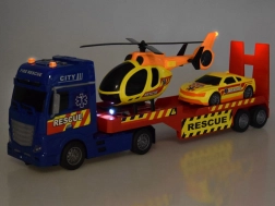 Permetti ai tuoi bambini di immergersi nel mondo avvincente delle missioni di salvataggio con questo eccezionale set! Il divertimento include scenari realistici con veicoli come un camion con pianale rimovibile, un elicottero e un'auto.
