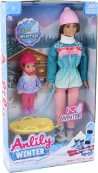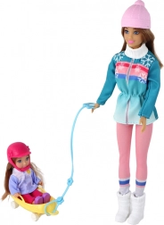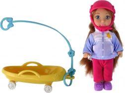 Scoprite la magia dell’inverno con mamma e figlia sulla slitta. La bambola grande ha lunghi capelli castani e un caldo berretto, la bambolina indossa un casco rosa per un gioco più sicuro. Gli abitini invernali pastello con fiocchi di neve enfatizzano l’atmosfera delle avventure innevate e la slitta gialla invita a corse senza fine.