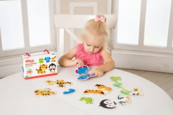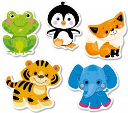 La confezione contiene 5 puzzle con sagome di animali