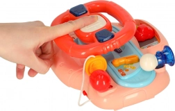 Il volante interattivo per bambini è un ottimo gioco per un divertimento creativo a casa e in viaggio. Il bambino può girare il volante e “guidare” la piccola auto sul cruscotto, accompagnato da avviamento del motore, clacson, frecce con luce e allegre melodie. Grazie alla possibilità di regolare il volume, il gioco si adatta facilmente all’ambiente.