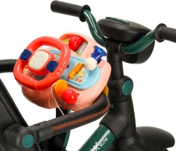 Il giocattolo è progettato con attenzione allo sviluppo: supporta la motricità fine, la coordinazione mano–occhio e la percezione sensoriale. La pratica cinghia di fissaggio consente di agganciare rapidamente il volante al passeggino o alla culla, così il divertimento può continuare ovunque.