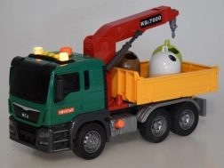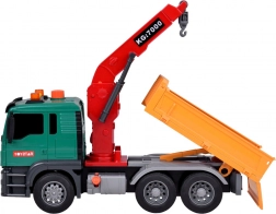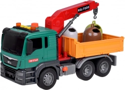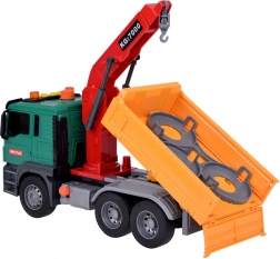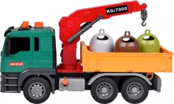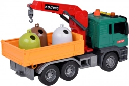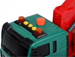 Il camion ha una gru con un braccio girevole per sollevare e spostare i cassonetti. Il ribaltabile del veicolo può essere alzato e abbassato per facilitare lo scarico del carico.