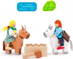 Il set comprende due personaggi, due cavalli e una cassetta di legno con verdura, così i bambini possono iniziare subito con le proprie scenette. Il gioco favorisce lo sviluppo della fantasia, la coordinazione occhio–mano e la motricità fine.