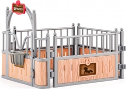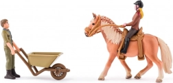 Nel set trovate tutto per la cura del cavallo: recinto/tettoia, cavallo con cavaliere, contadino con carriola e piccoli accessori. Le dimensioni del cavallo 12 × 10 cm sono ideali per le mani dei bambini.