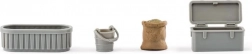 - Fienile, figure di animali, 2 personaggi contadini, attrezzi e altri accessori (ad es. cassette, verdura, mangiatoie)