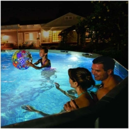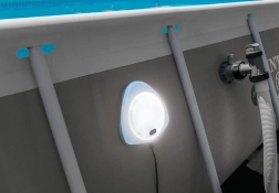 La luce è compatibile con la maggior parte delle piscine fuori terra e pieghevoli e, con la sua potenza, copre una lunghezza fino a 7,32 m. Struttura resistente e impermeabile, diversi modi colore e controllo semplice la rendono l’accessorio ideale per un bagno serale sicuro e di stile.