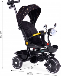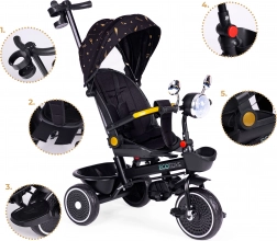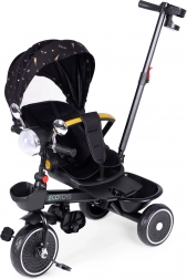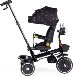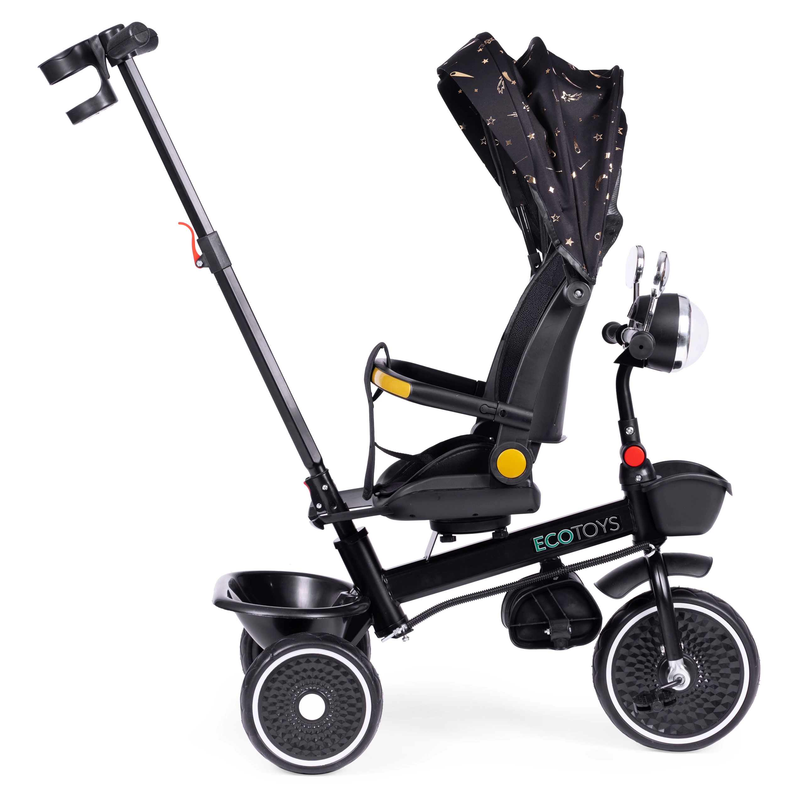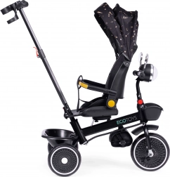 Triciclo per bambini con sedile girevole a 360°, asta di guida e cappottina, nero, ECOTOYS