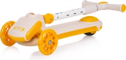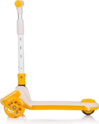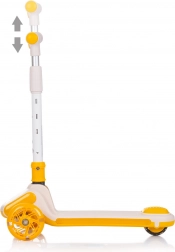 Il monopattino Rapido è ideale per i giovani piloti grazie al suo colore giallo e alla struttura stabile con tre ruote e lucine LED colorate sulle ruote.