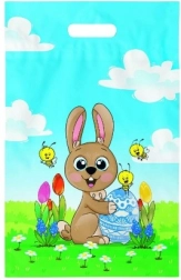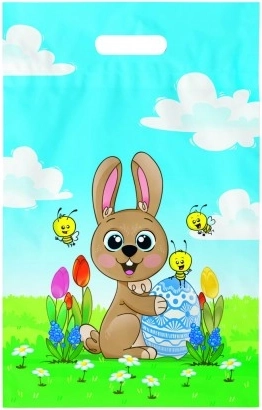 Borsa di plastica pasquale con manico è l'accessorio ideale per lo shopping o il trasporto dei regali pasquali grazie alle sue dimensioni spaziose e al materiale resistente.