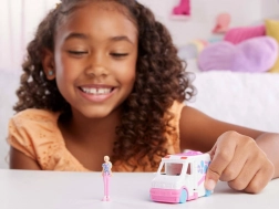 Include una mini bambolina che si piega in vita per sedersi comodamente in cabina e all’interno. Le ruote funzionanti e il pannello laterale apribile favoriscono un gioco realistico e stimolano la fantasia dei bambini. Un set perfetto per i piccoli fan di BARBIE e per i collezionisti di miniature.