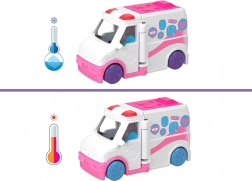 Questa mini ambulanza ispirata al mondo BARBIE offre tanto divertimento in un piccolo formato. Una volta aperto, il veicolo si trasforma in una piccola clinica dove la mini bambolina può prendersi cura dei pazienti, sedersi sul sedile girevole e creare le proprie storie di salvataggio. Grazie alle dimensioni compatte, il set è ideale sia a casa che in viaggio.