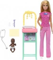 Scoprite il mondo delle avventure mediche con la bambola Barbie come pediatra! Questo set di gioco include la bambola Barbie in abiti medici rosa e la sua piccola paziente. I bambini possono godersi un gioco che sviluppa abilità di cura e nutrizione.