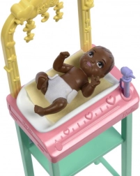 - bambola Barbie, paziente, tavolo, fasciatoio, stetoscopio e altri accessori