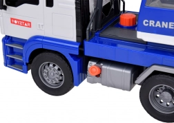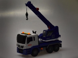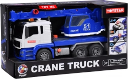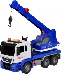 Questa autogrù di qualità è progettata per piccoli costruttori e offre molte funzioni realistiche. È dotata di un braccio mobile con gancio, che consente di sollevare e trasportare oggetti, ed effetti sonori che imitano l'avvio del motore, la retromarcia e il clacson.