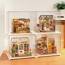 È progettata per le casette in miniatura della serie DG (tranne DG12). Lo spazio interno di 22 × 22 × 22,5 cm è ideale per la maggior parte delle scene, mentre le dimensioni esterne di 28,7 × 23,7 × 24,4 cm garantiscono stabilità e protezione. Grazie alla struttura intelligente, le vetrine possono essere impilate fino a 6 livelli, risparmiando prezioso spazio su scaffali o scrivanie.